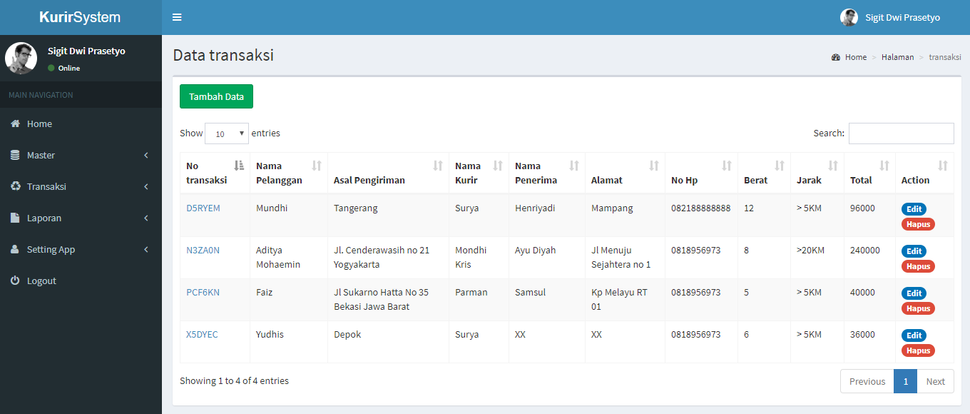 Aplikasi Rekap Transaksi Jasa Kurir Pengiriman Barang Berbasis Web