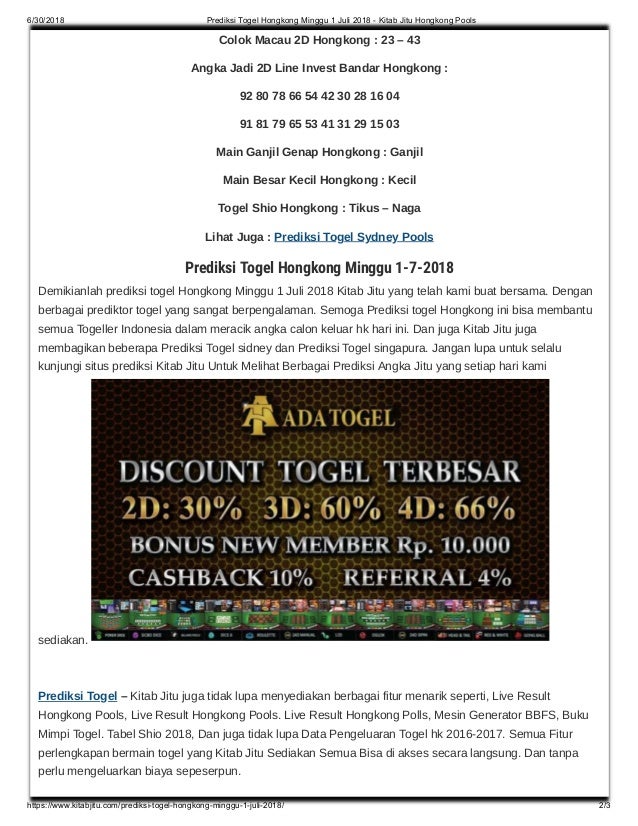 Prediksi togel hongkong minggu 1 juli 2018 kitab jitu hongkong pools